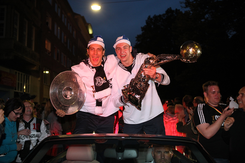 | Deutscher Meister 2010! | Flug nach Kiel. | Ehrenrunde über dem Rathausplatz. | Flug nach Kiel. | |||