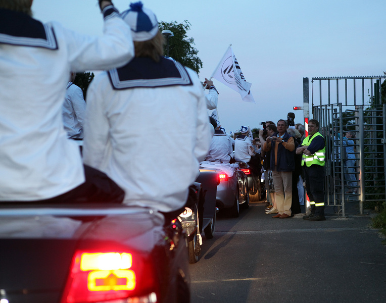 | Ankunft in Kiel-Holtenau. | Ankunft in Kiel-Holtenau. | Autokorso zum Rathaus. | Autokorso zum Rathaus. | |||