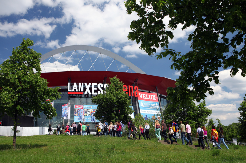 | EHF-Generalsektretär Wiederer und EHF-Präsident Lian. | Die Lanxess arena in Köln. | Einlauf der Teams. | Didier Dinart attackiert Christian Zeitz. | |||