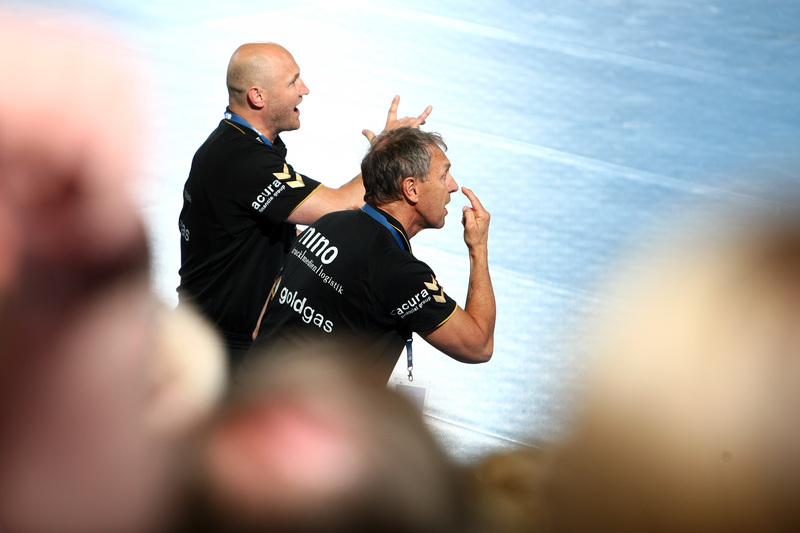 | Filip Jicha. | Das Trainer-Duo der Rhein-Neckar-Löwen. | Daniel Narcisse. | Es ging hart zur Sache. | |||