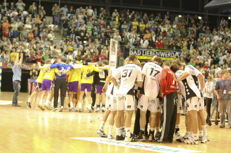 | Filip Jicha. | Marcus Ahlm am Kreis. | Christian Zeitz in der Luft. | Auszeit. | |||