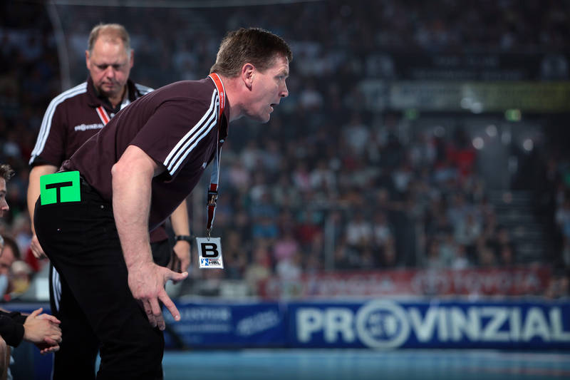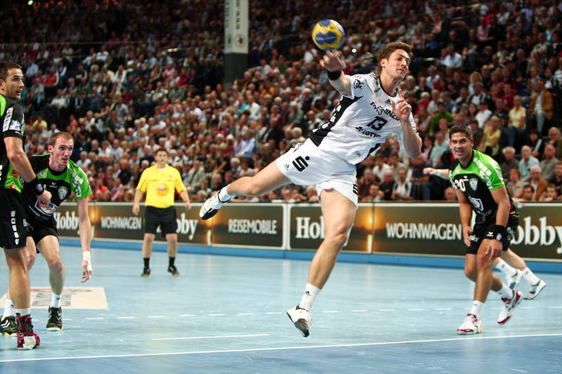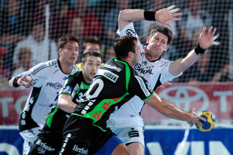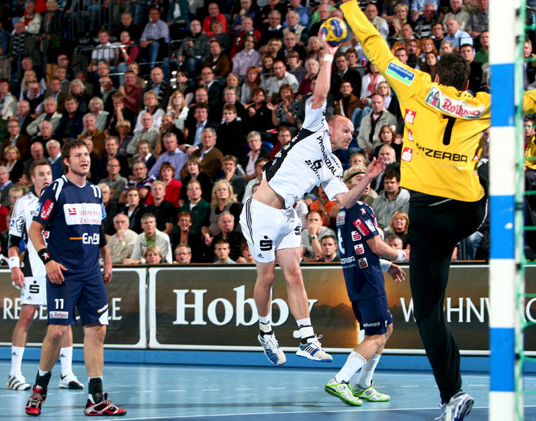 | Thierry Omeyer. | Florian Kehrmann, Sebastian Preiß und Christoph Theuerkauf auf der Tribüne. | Aron Palmarsson. | Momir Ilic. | |||