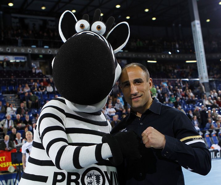 | Vor dem Anpfiff. | Hein Daddel und Boxer Arthur Abraham. | Hein Daddel und Boxer Arthur Abraham. | Evgeni Pevnov und Filip Jicha. | |||