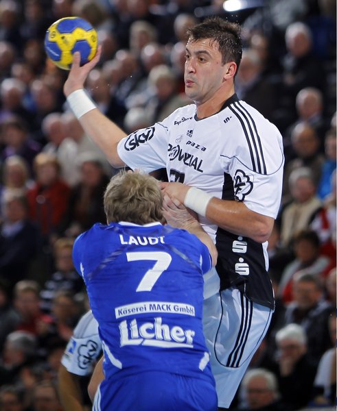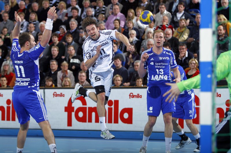 | Alfred Gislason. | Florian Billek gegen Henrik Lundström. | Timm Schneider. | Andreas Palicka und Thierry Omeyer. | |||