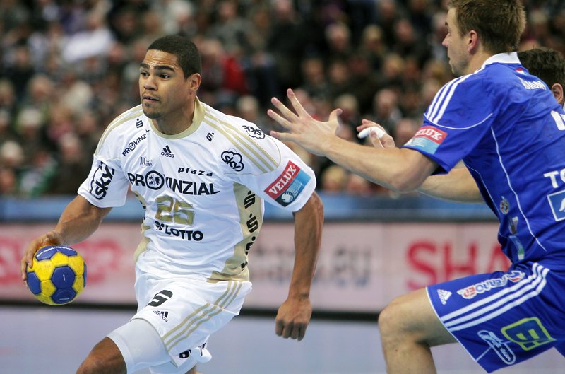 | Daniel Narcisse. | Christian Sprenger. | Marcus Ahlm. | Die serbischen Nationalspieler Momir Ilic und Rajko Prodanovic werden für EM-Silbwer geehrt. | |||