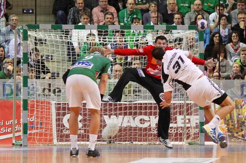 | Aron Palmarsson. | Christian Zeitz. | Momir Ilic. | Spielszene. | |||