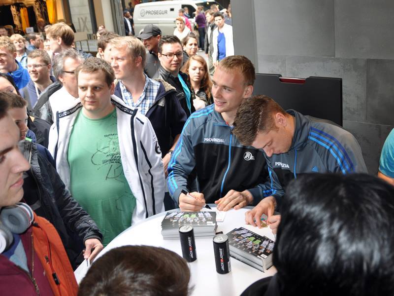 | Filip Jicha. | Enttäuschung. | Das Fan-Mobil. | Autogrammstunde vor dem Final4. | |||