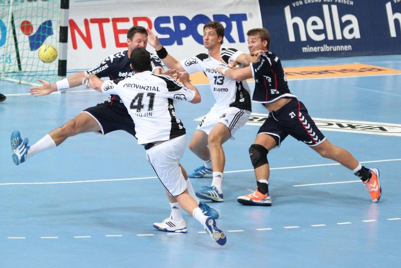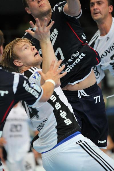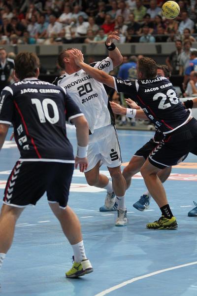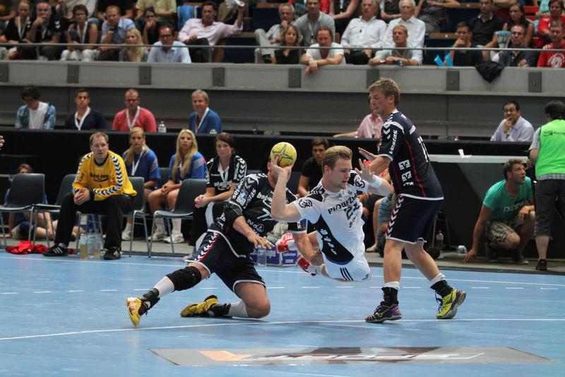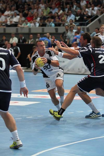 | Supercup-Sieger 2012! | Marcus Ahlm wird von Tobias Karlsson und Thomas Mogensen attackiert. | Christian Zeitz. | Abwehrarbeit. | |||